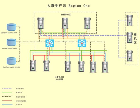 本次实施基于社区版OpenStack并集成第三方SDN网络设备及存储设备搭建一个OpenStack私有云平台。本平台共三Region,Region One (传统网络区),Region two (华为SDN 区),Region Three(华三SDN区)。